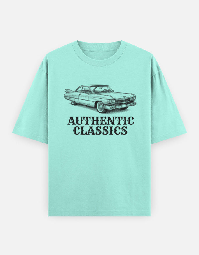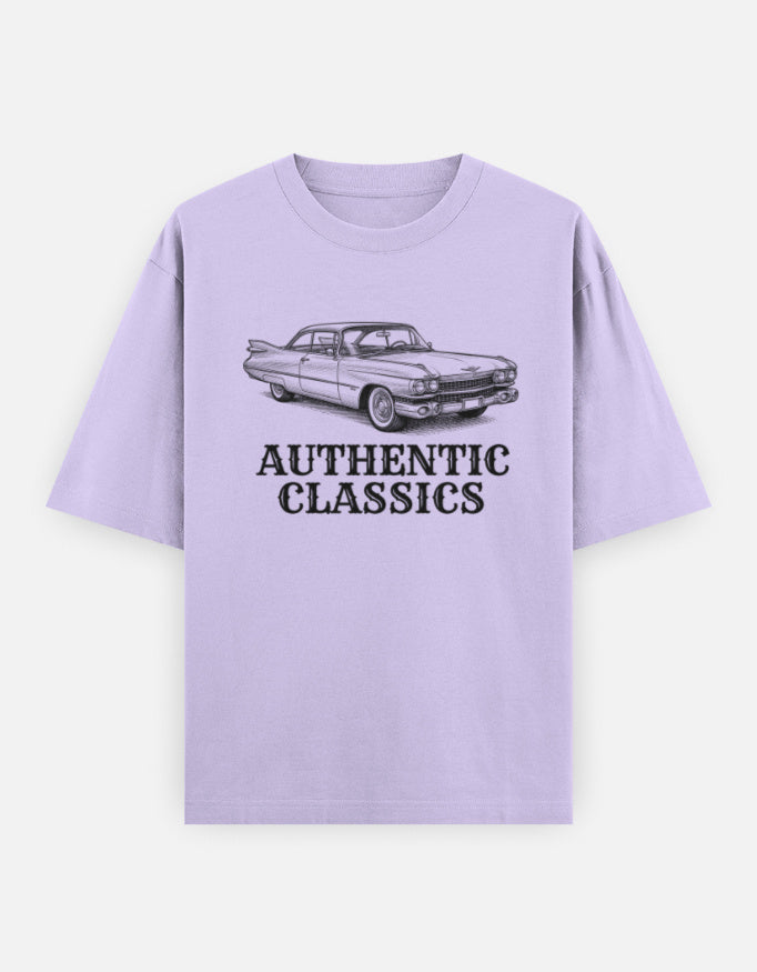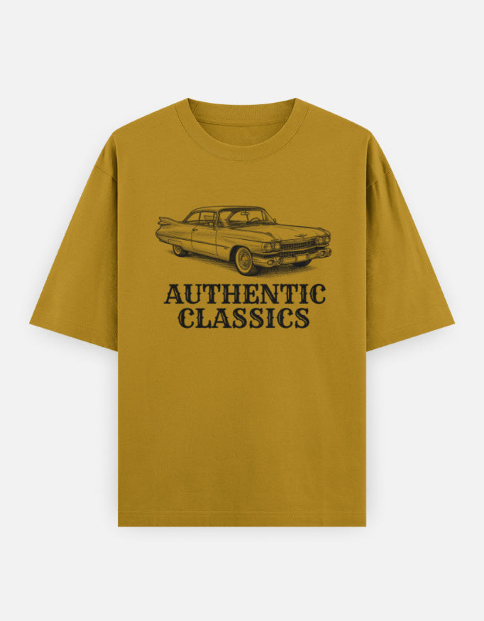 The “Authentic Classics” Oversized T-Shirt features a finely detailed vintage car illustration paired with bold heritage-style typography. Inspired by golden-era automobiles, this design reflects craftsmanship, legacy, and undeniable presence.