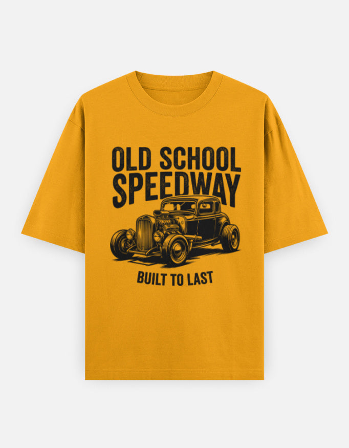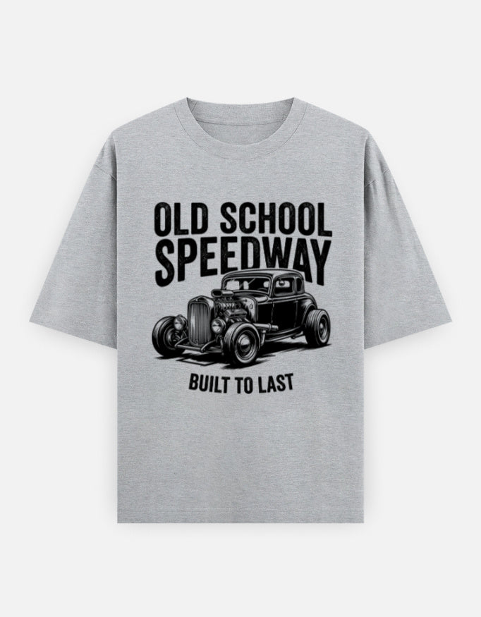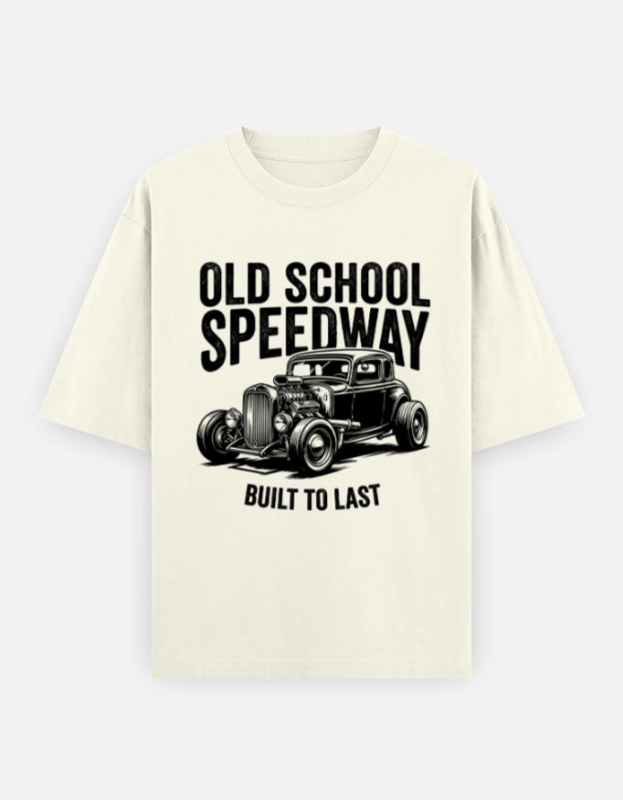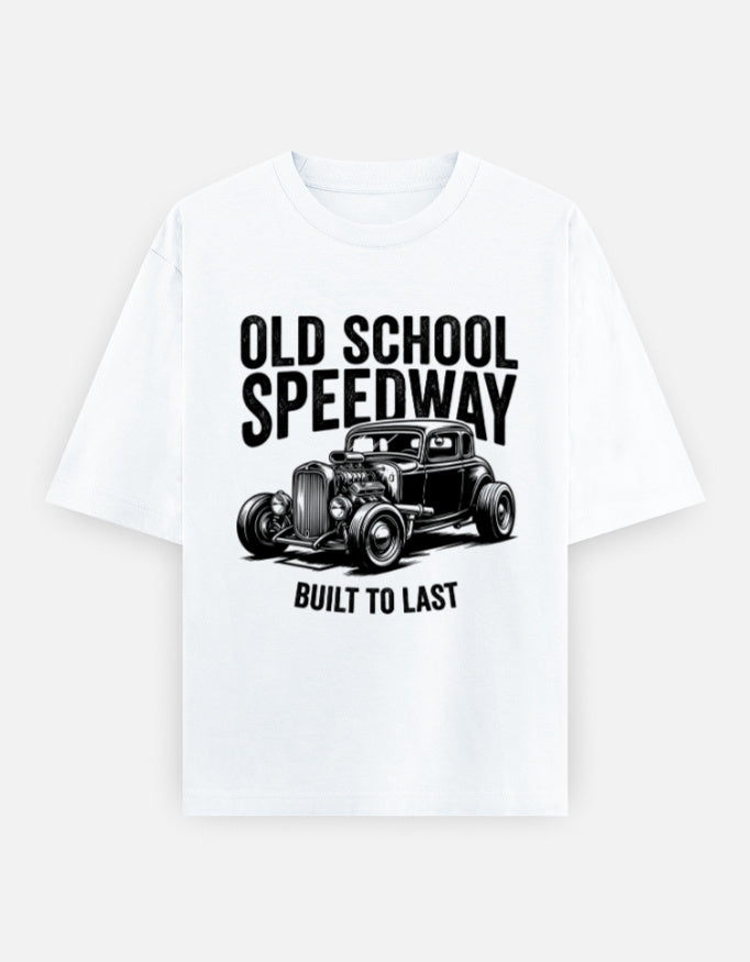 The “Old School Speedway – Built To Last” Oversized T-Shirt features a detailed vintage hot rod graphic paired with bold retro typography. Inspired by classic speed culture and old-school garage aesthetics, this design represents raw horsepower, craftsmanship, and timeless attitude.